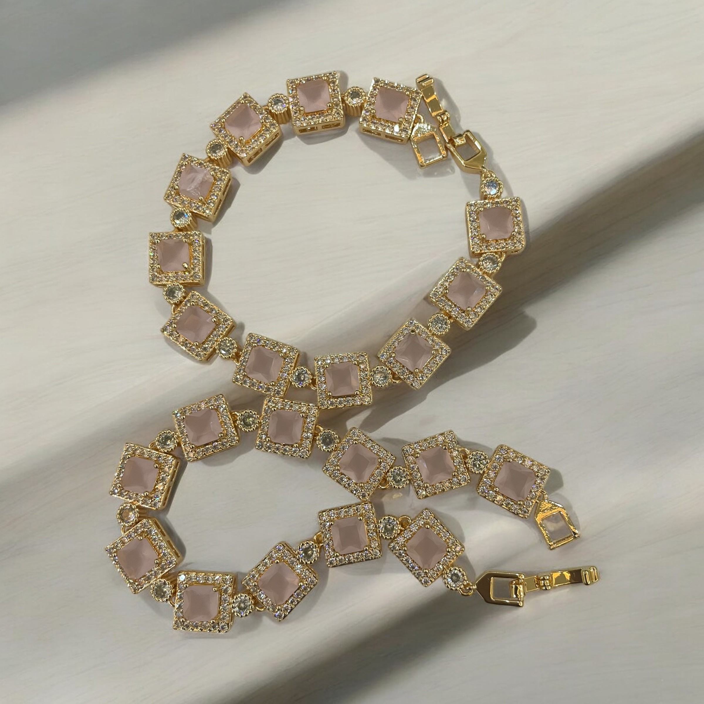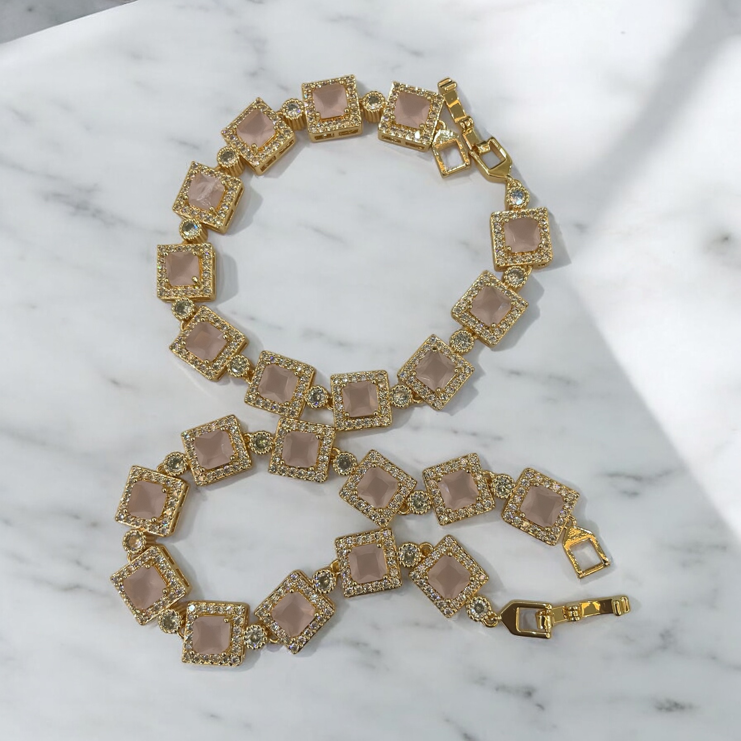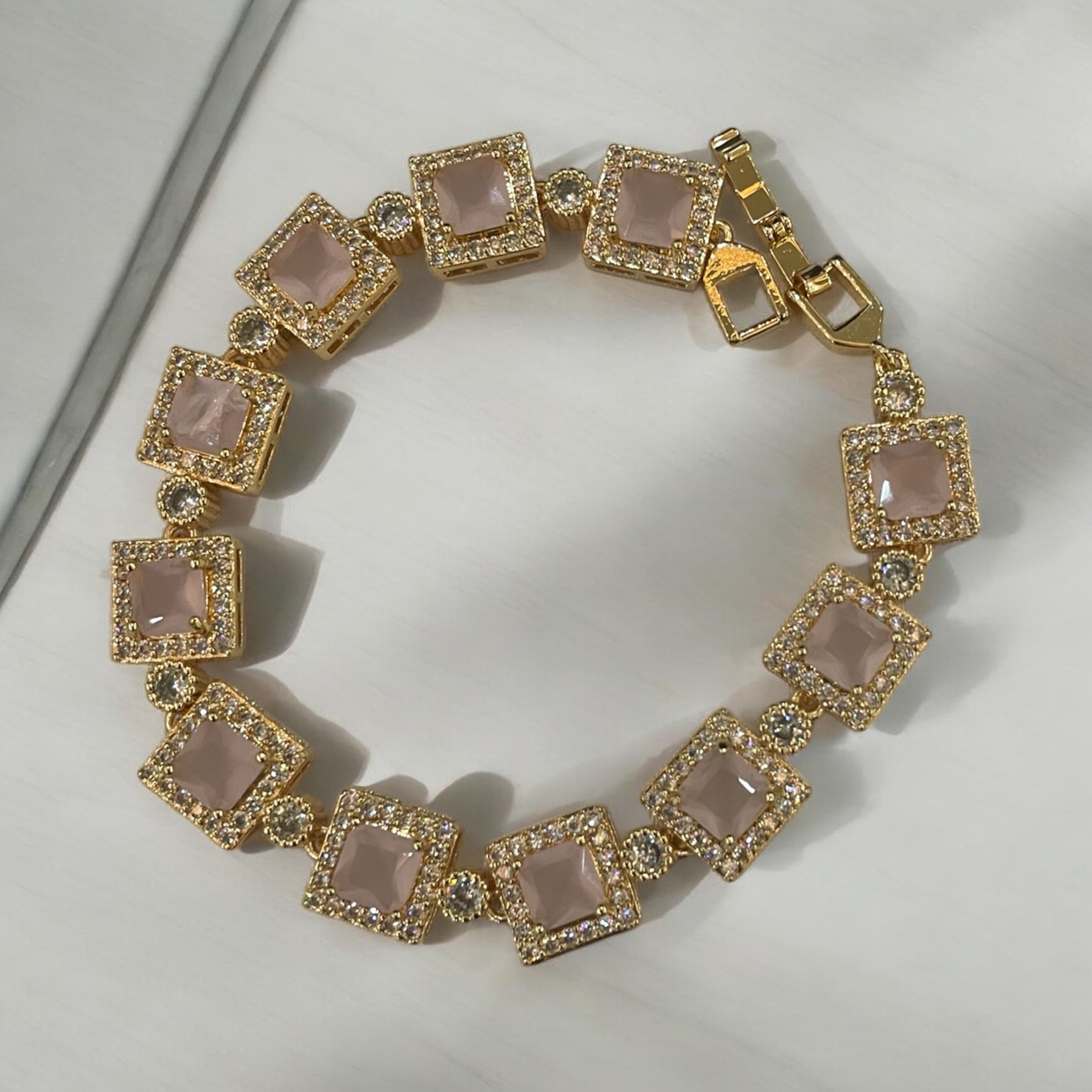 Cubic Light Pink Octagon Link Bracelets
