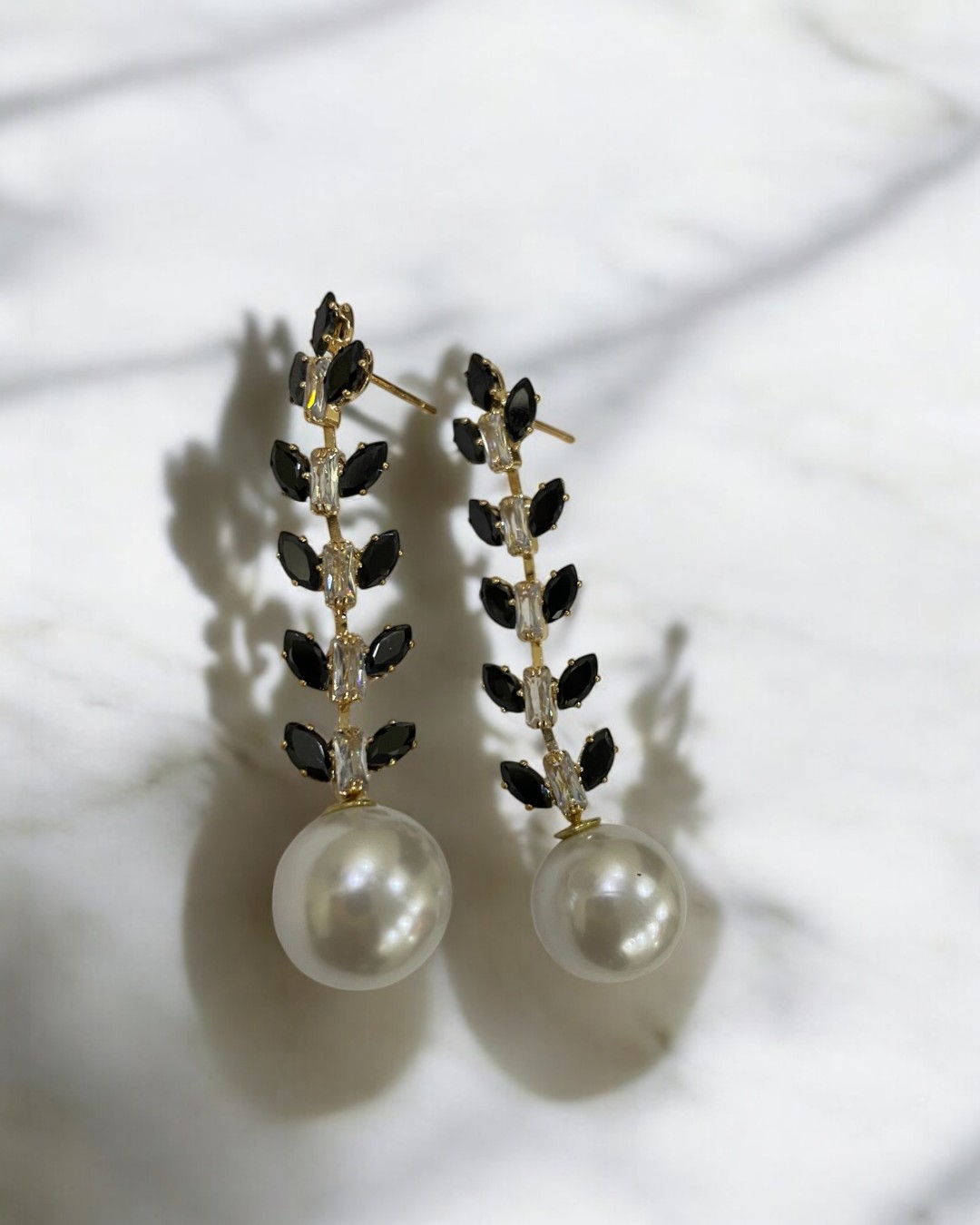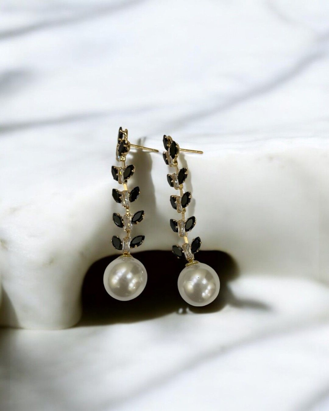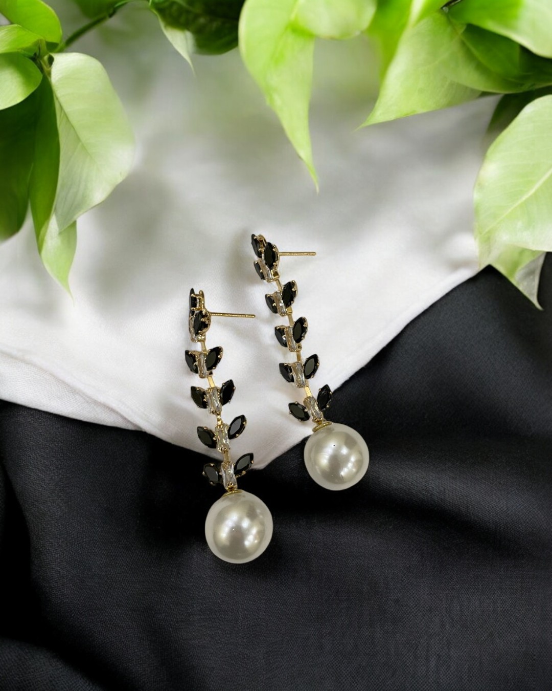 Delicate Leaf Dangling Long Black Earrings