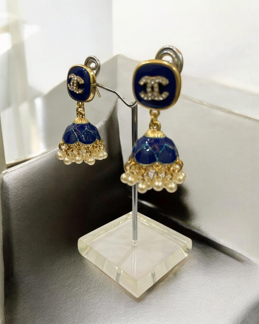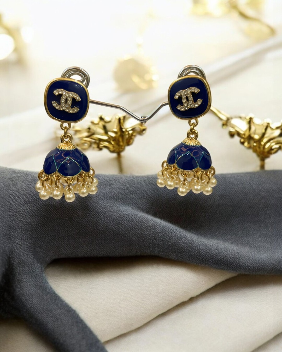 Meenkari Blue Kundan Jhumkay