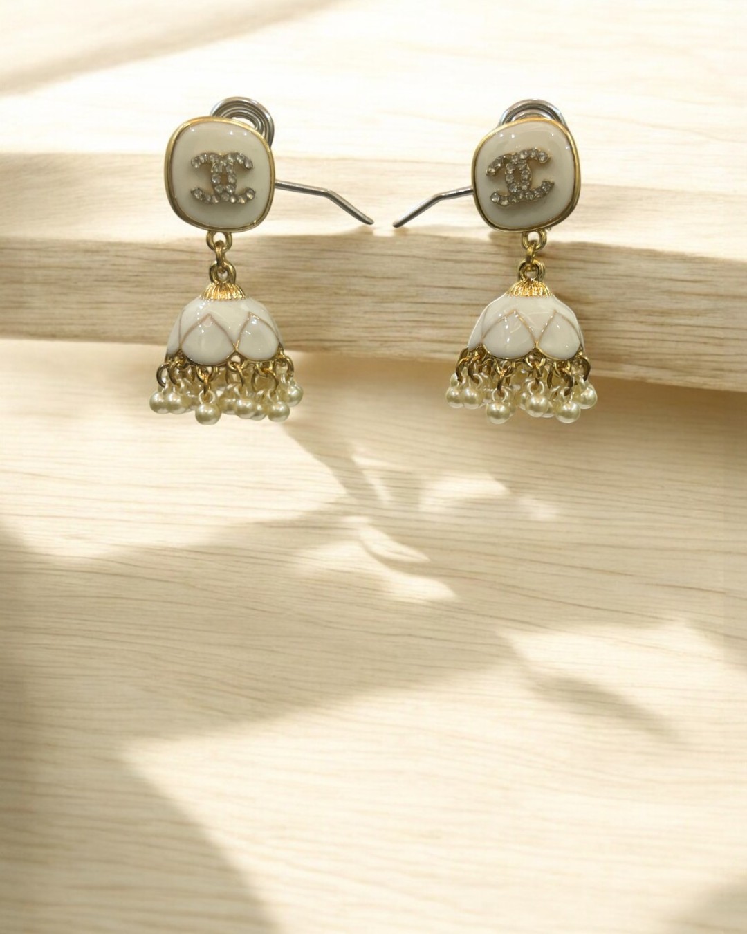 Meenkari White & Gold Kundan Jhumkay