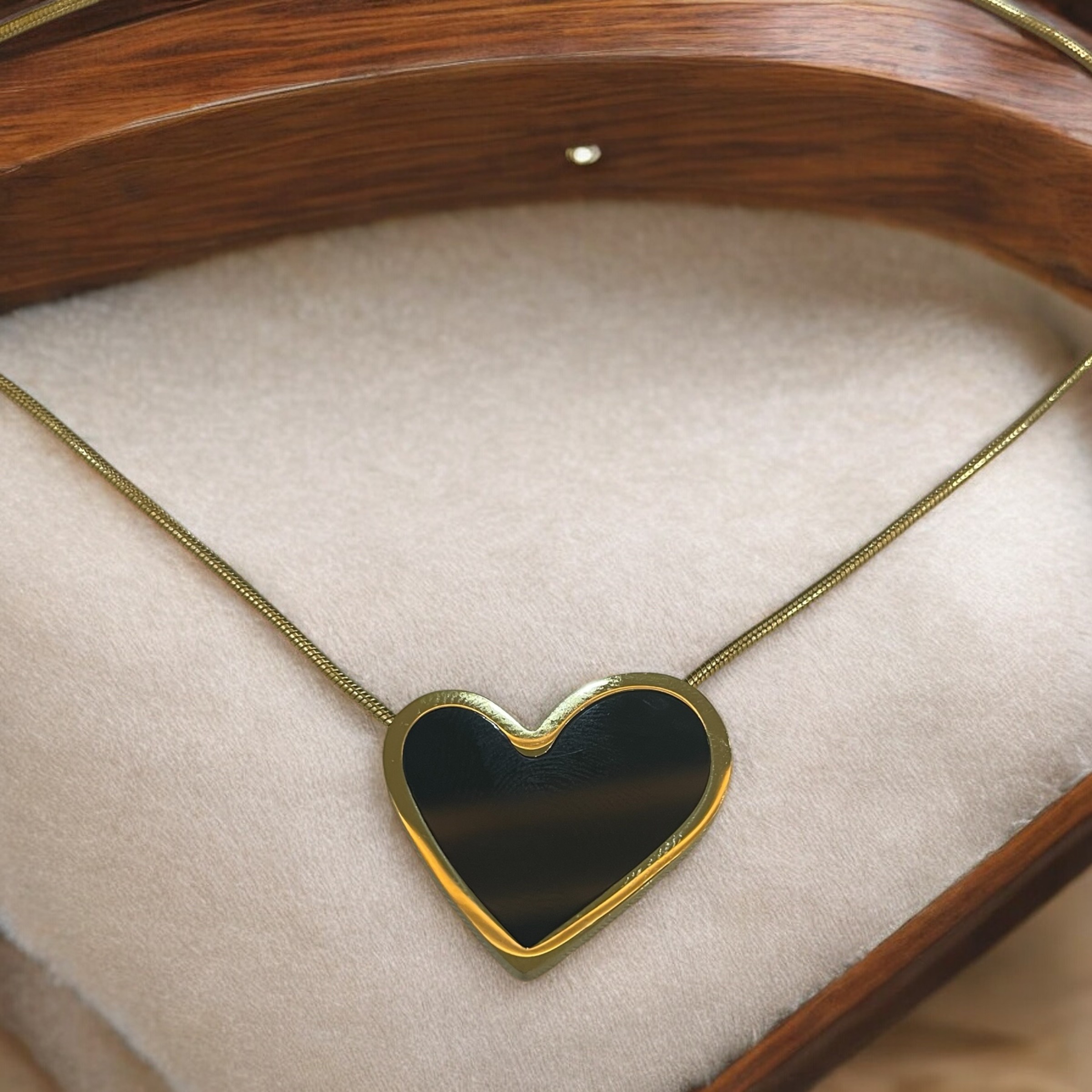 Stainless Steel Dark Gray Heart Shaped Necklace