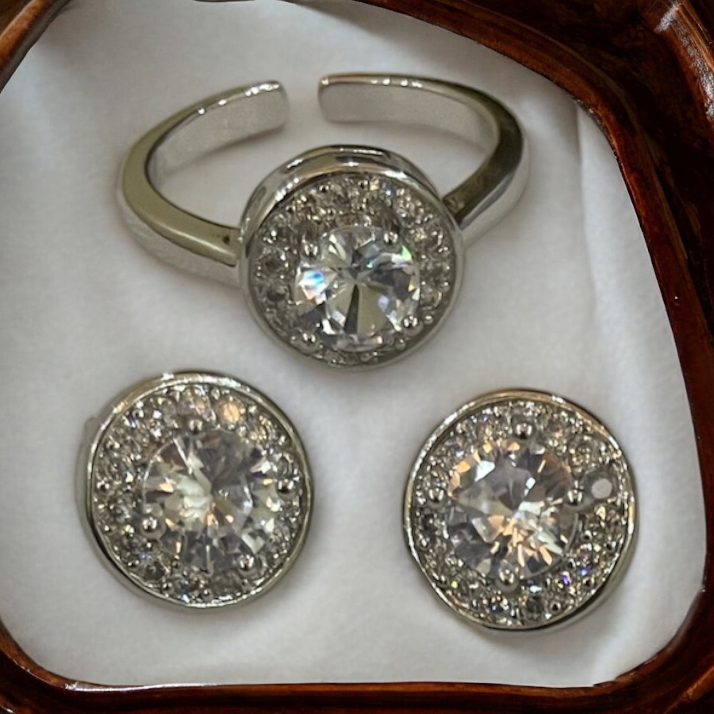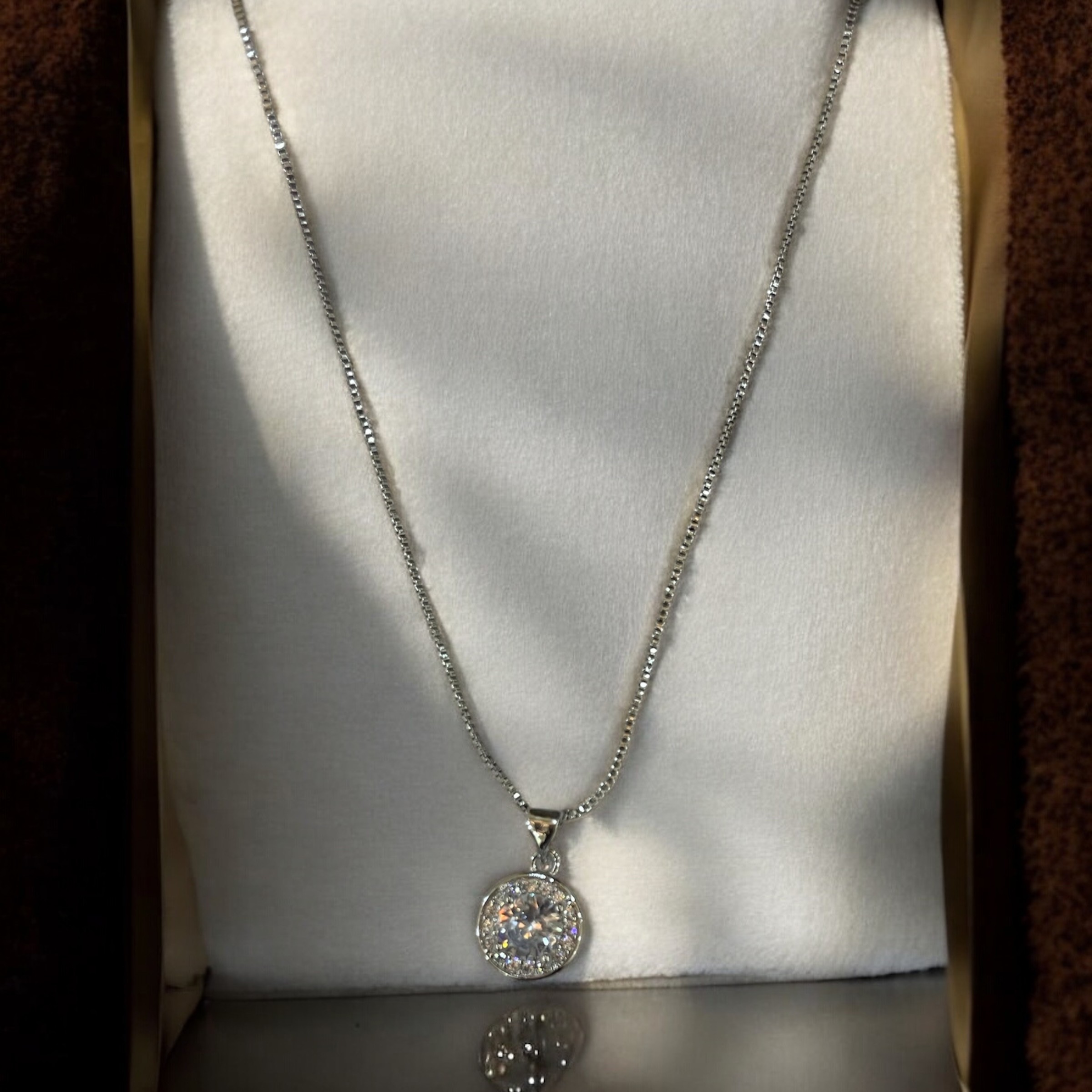 Sterling Silver CZ Halo Pendant Necklace & Earrings