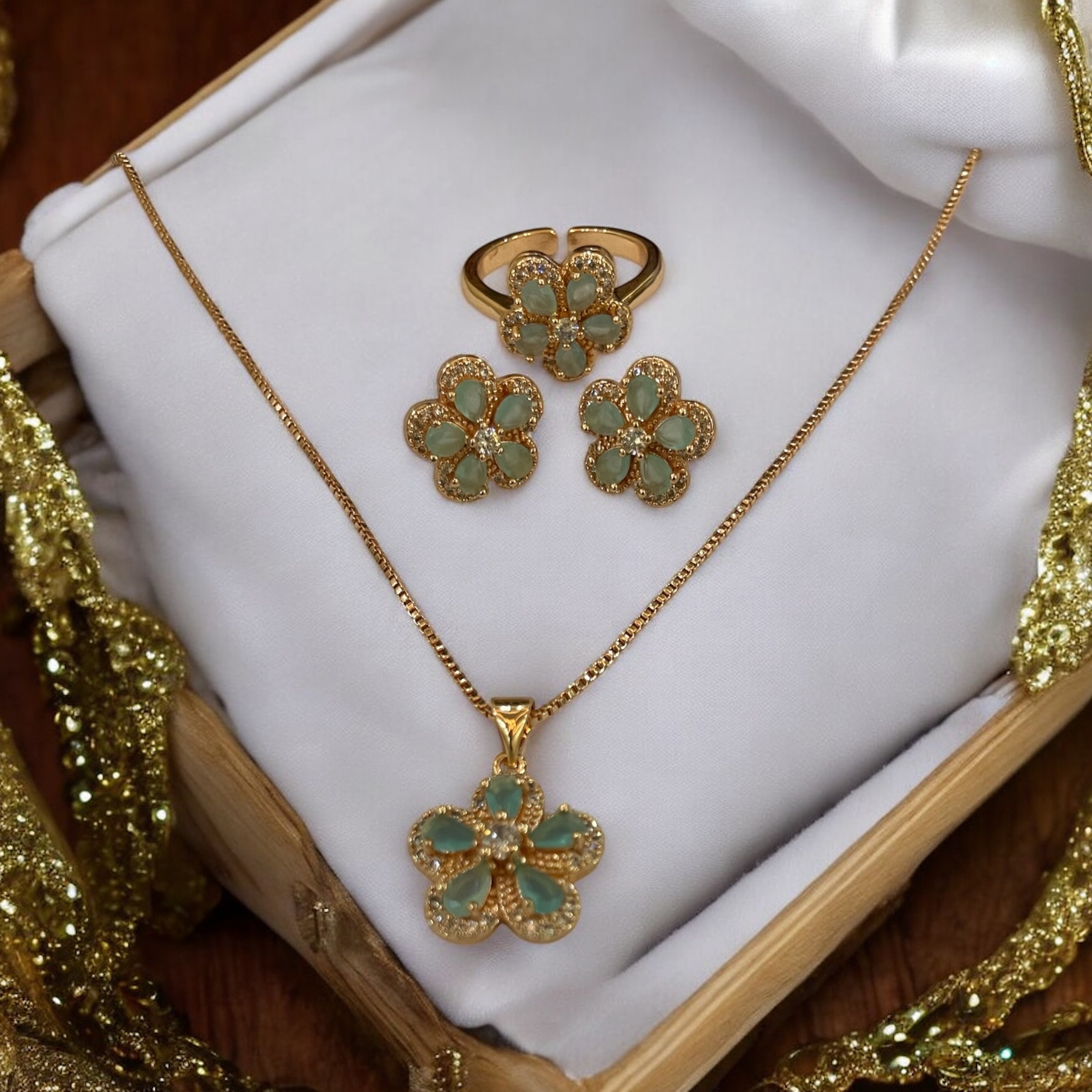Be the first to review “Sun Flower Pendant Necklace Earrings Ring Jewelry Set”